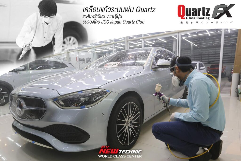 ผลิตภัณฑ์ GLASS COATING ของ NewTechnic QUARTZ GLASS COATING เทคนิคการเคลือบแก้วขั้นสูงโดย Quartz FX ผู้นำเคลือบแก้วระบบพ่นรับรองโดย Japan Quartz Club ประเทศญี่ปุ่น ที่สุดนวัตกรรมเคลือบแก้วจากประเทศญี่ปุ่นที่ช่วยให้รถยนต์ยังคงสภาพสวยงามเพื่อคนรักรถหนึ่งในเทคโนโลยีการดูแลรถที่ปัจจุบันได้รับความนิยมเป็นอย่างมากนั่นก็คือการทำ GLASS COATING (เคลือบแก้ว) โดยใช้น้ำยา GLASS COATING แท้ซึ่งมี ซิลิกา (SiO2) เป็นส่วนประกอบหลักเคลือบผิวด้านบนสุดของชั้นสีรถเกิดเป็นผลึกแก้วที่ทนความร้อน ป้องกันรังสี UV ป้องกันการเกิดริ้วรอยต่างๆ ได้ดีกว่าการลง wax ทั่วไป โดย NewTechnic ได้นำเทคโนโลยีระบบการเคลือบสีรถใหม่ล่าสุดนี้ พร้อมทั้งผู้เชี่ยวชาญเฉพาะทางมาจากประเทศญี่ปุ่น ปัจจุบัน NewTechnic มีผลิตภัณฑ์เคลือบแก้วพร้อมให้บริการสองตัว คือ the GLASS และ GLASS COATING ระบบพ่น Quartz FX บริการการเคลือบแก้วระบบพ่นทำได้เฉพาะกับการเคลือบแก้วที่ให้ค่าความแข็ง ระดับ 9H เท่านั้น เนื่องจากการพ่นเป็นเทคนิคที่ช่วยส่งผ่านสารซิลิกา ให้เกิดประจุซิลิกา Sio2 ตามธรรมชาติที่มีความเข้มข้นสูง ไม่มีสารประกอบอื่นๆ เจือปน เปรียบได้ดังแร่ Quartz หรือผลึกแก้วที่แข็งกว่าแก้วทั่วไป ดังนั้น การเคลือบแก้วระบบพ่นจึงเป็นที่นิยมมากและถูกพูดถึงมากที่สุดในประเทศ ญี่ปุ่น ซึ่งเป็นประเทศต้นกำเนิดการเคลือบแก้วรถยนต์และคิดค้นวิธีการพ่นขึ้นมา ปัจจุบันในประเทศไทยมีเพียง NewTechnic เท่านั้นที่ผ่านการยอมรับจาก Japan Quartz Club ประเทศญี่ปุ่นให้เข้าร่วมเป็นหนึ่งในสมาชิก และเป็นศูนย์บริการแห่งแรกในประเทศไทย ปัจจุบันในประเทศไทยมีเพียง NewTechnic เท่านั้นที่ผ่านการยอมรับจาก Japan Quartz Club ประเทศญี่ปุ่น ให้เข้าร่วมเป็นหนึ่งในสมาชิกและเป็นศูนย์บริการแห่งแรกในประเทศไทย Quartz Glass Coating เคลือบแก้วระบบพ่นแท้ๆ จากประเทศญี่ปุ่น ไม่ได้พ่นโชว์ พ่นแล้วไม่ได้ใช้ผ้าเช็ดตาม ไม่ได้ทาก่อนพ่น หรือพ่นก่อนทาQuartz Glass Coating*** ***เคลือบแก้วระบบพ่นพันธ์แท้เป็นการพ่นผ่านชั้นอากาศแบบไม่มีการใช้ผ้าเช็ดตามถูกพัฒนาสูตรพ่นจากสมาคมเคลือบแก้วประเทศญี่ปุ่นเป็นการพ่นด้วย Quartz type 9H ชั้นพิเศษ ซึ่งความพิเศษจะอยู่ตรงเป็นการผสานซีลีก้าแท้ตามหลักการวิทยาศาสตร์อย่างแท้จริง โดยวิธีนี้เป็นวิธีที่ศูนย์เคลือบแก้วระดับมืออาชีพทั่วประเทศญี่ปุ่นไว้วางใจสูงสุด