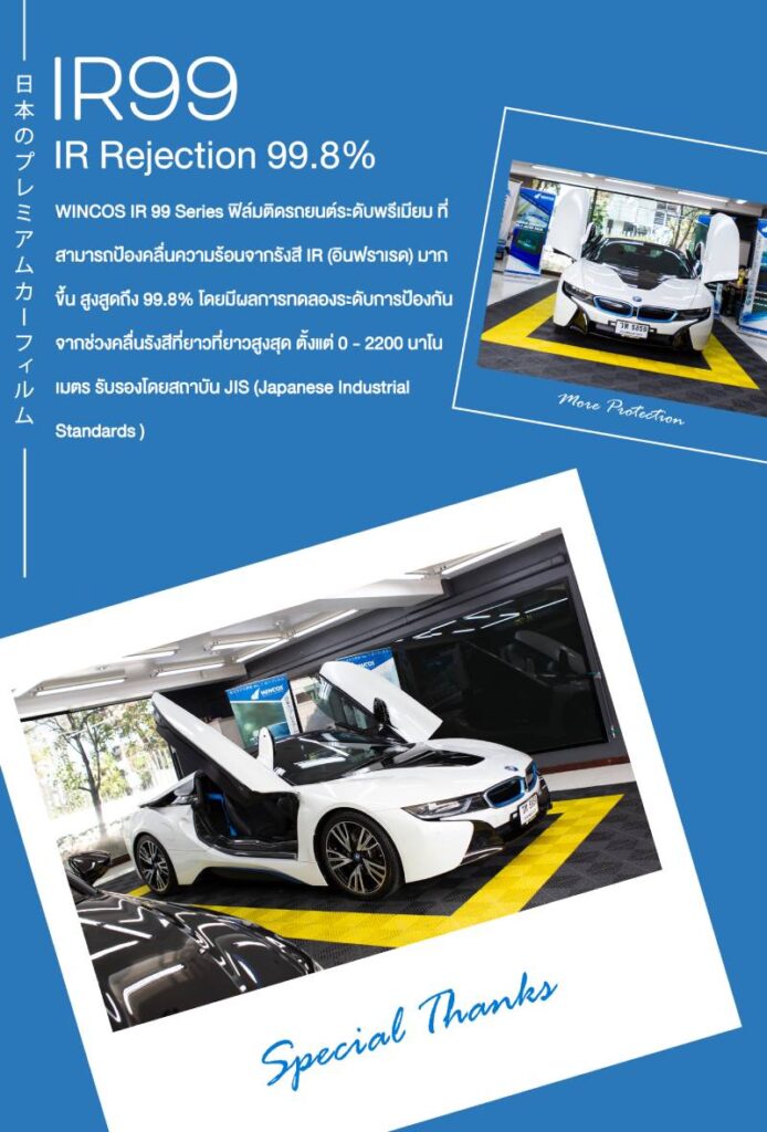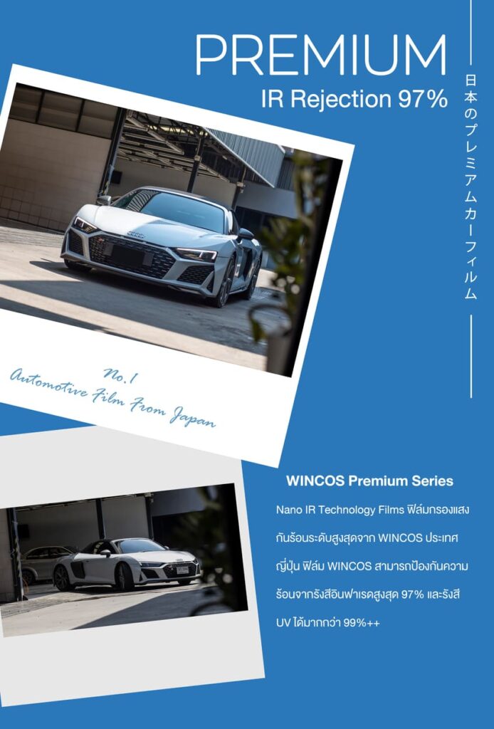 WINCOS Premium Series Nano-IR Tehnology Film ฟิล์มกรองแสงกันร้อนระดับสูงสุดจาก WINCOS ประเทศญี่ปุ่น ฟิล์ม WINCOS สามารถป้องกันความร้อนจากรังสีอินฟาเรดสูงสุด 97% และรังสี UV ได้มากกว่า 99%++